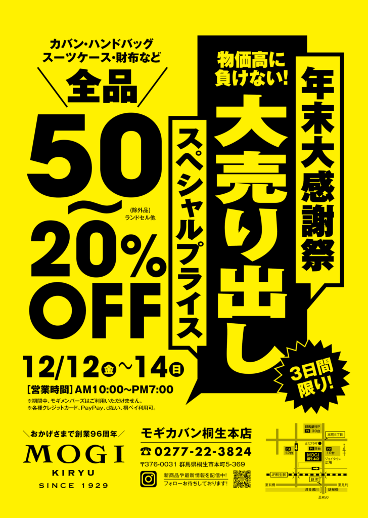【モギカバン桐生本店】年末大感謝祭 SALE 開催のお知らせ